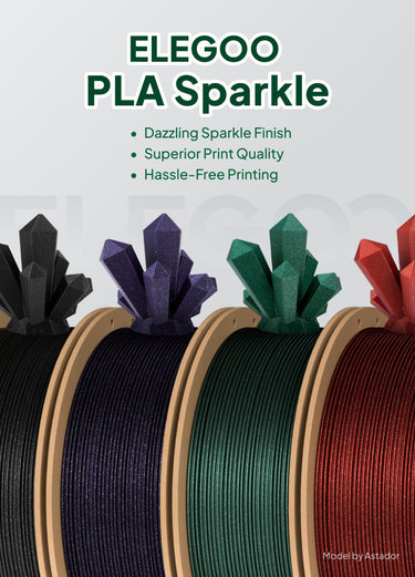 Add a dazzling sparkle effect to your prints with Elegoo PLA Sparkle, an aesthetic filament that combines smooth PLA quality with a unique sparkling finish, ideal for creating eye-catching decorative pieces, artistic designs, and gift items.