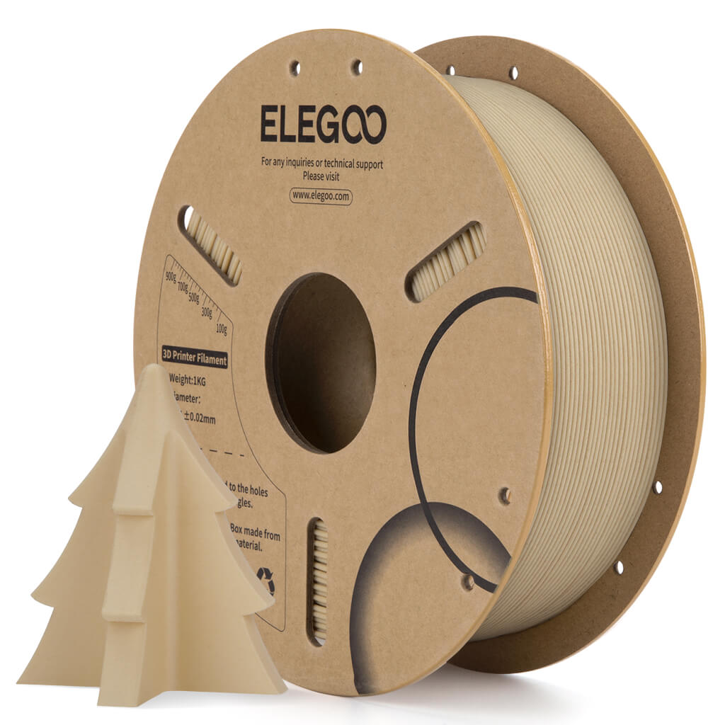 Infused with premium wood powder, Elegoo PLA Wood gives your prints a true-to-life wood aesthetic with natural elegance. Your prints will exhibit a deep, real wood texture, authentic wood tones, and a subtle scent—perfectly suited for artistic projects and handcrafted décor.
